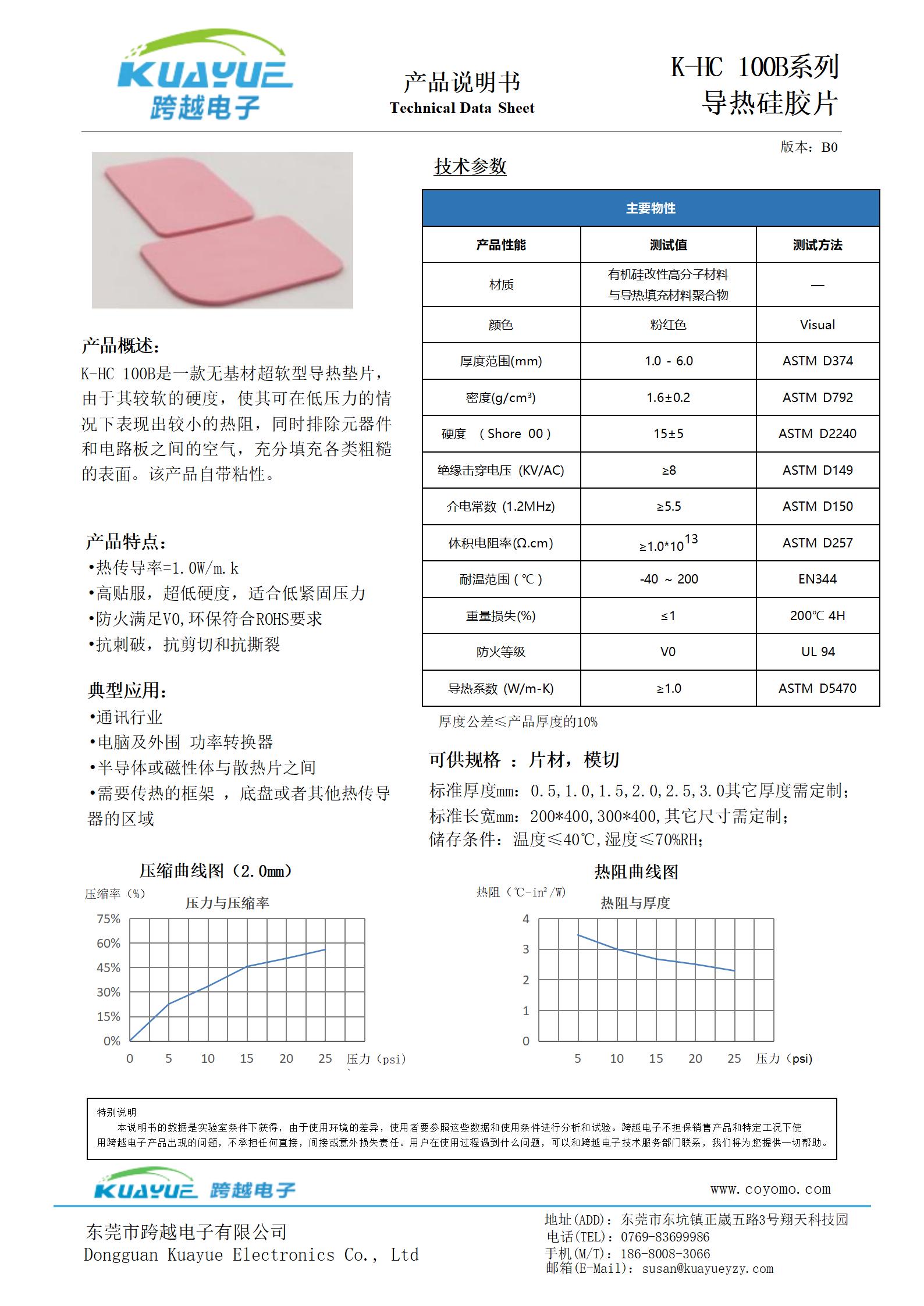 K-HC 100B是一款无基材超软型导热垫片,由于其较软的硬度,使其可在低压力的情况下表现出较小的热阻,同时排除元器件和电路板之间的空气,充分填充各类粗糙的表面。该产品自带粘性。