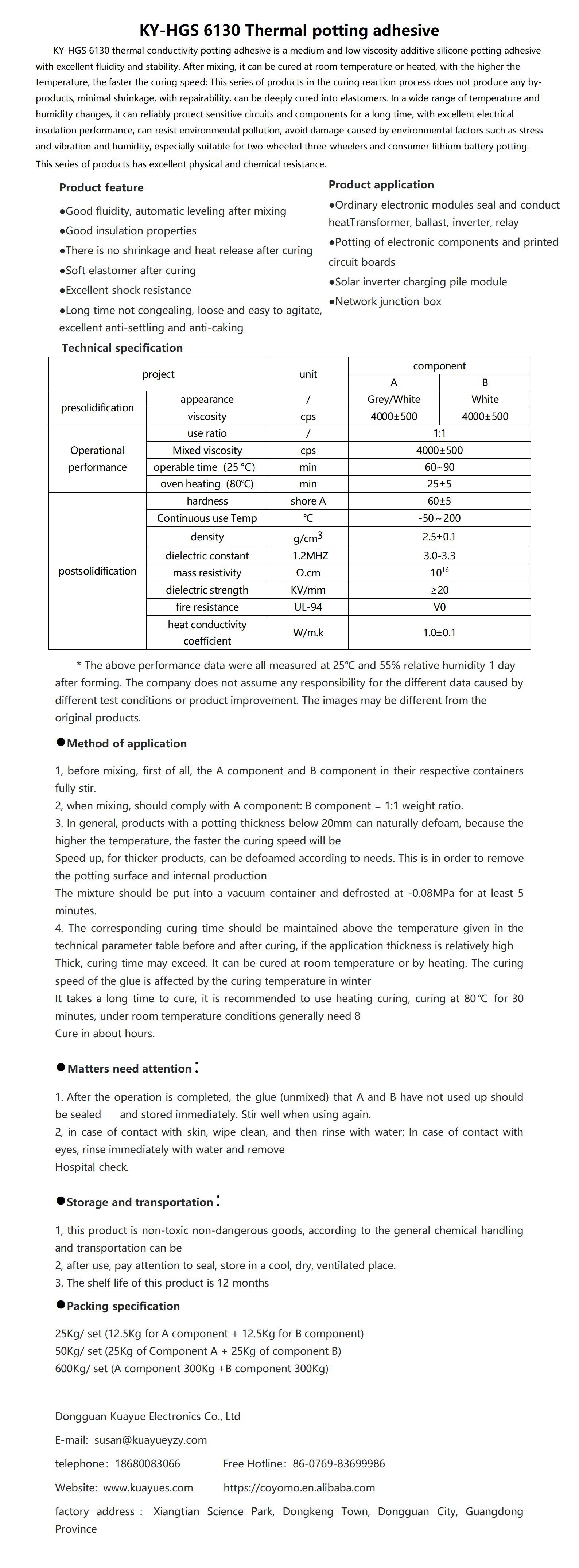 KY-HGS 6130 Thermal potting adhesive