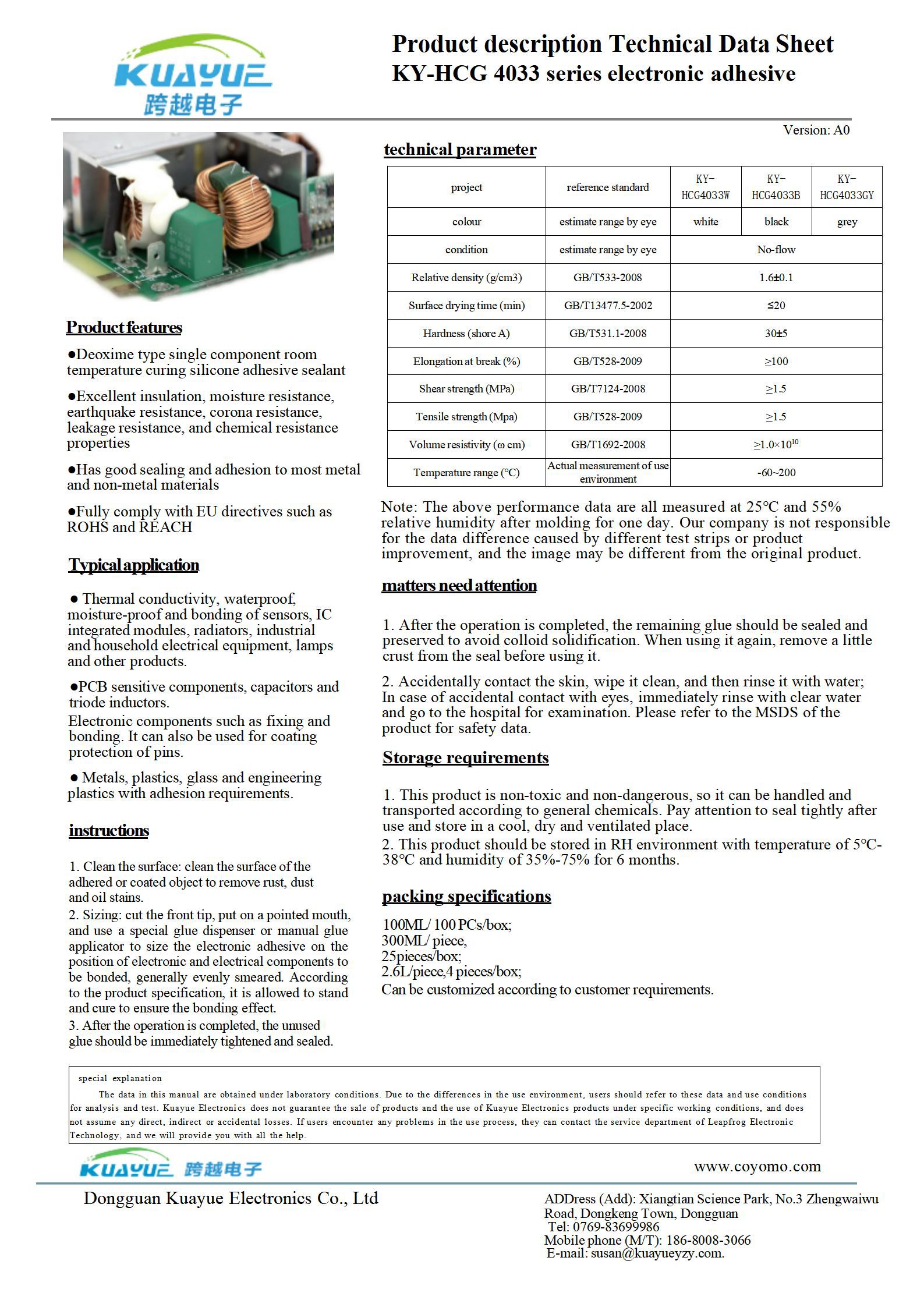 Product description Technical Data Sheet KY-HCG 4033 series electronic adhesive
