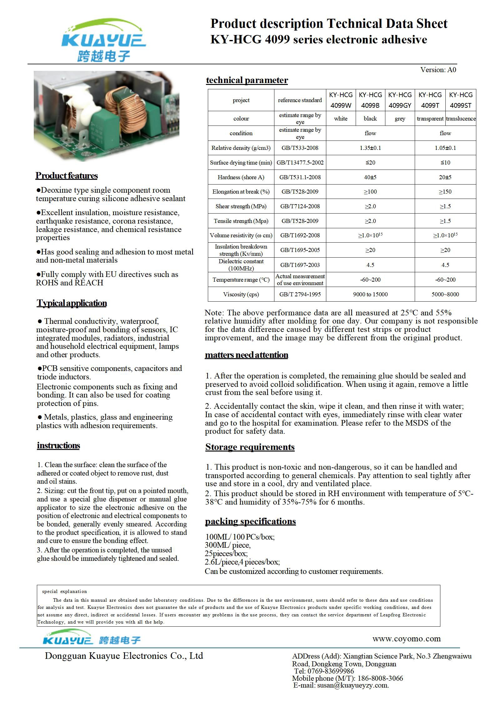 Product description Technical Data Sheet KY-HCG 4099 series electronic adhesive
