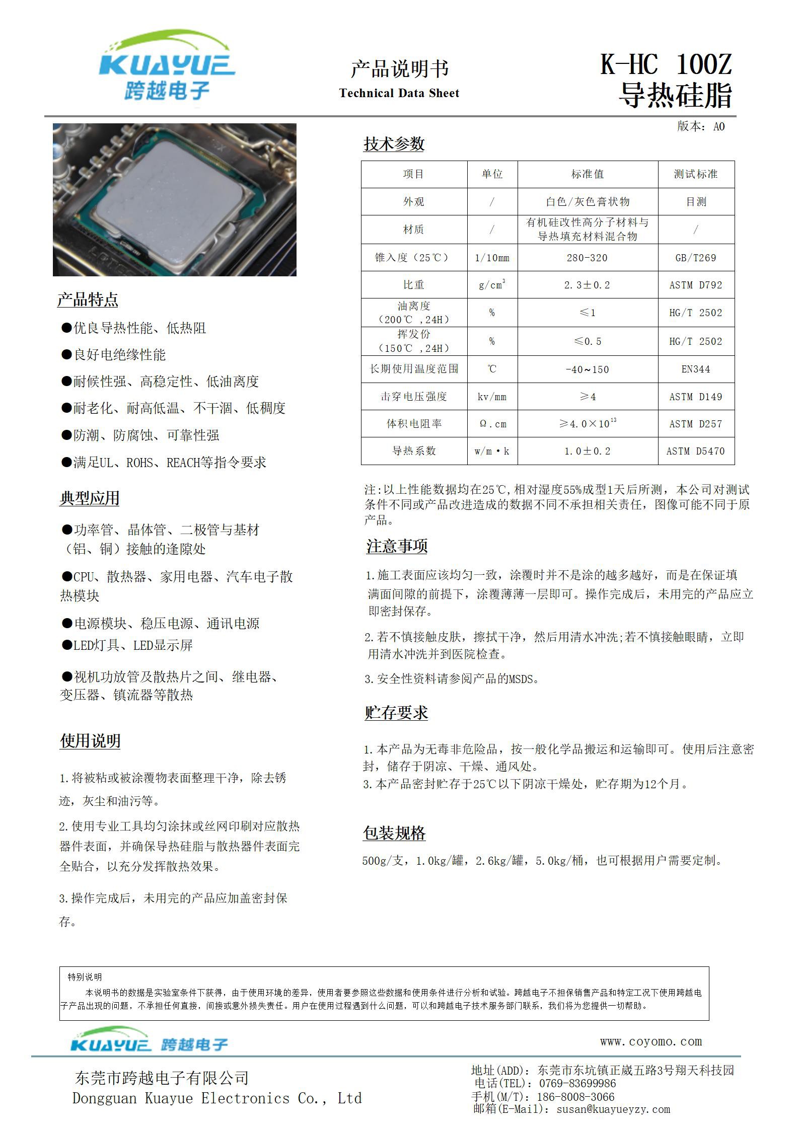 K-HC 100Z 导热硅脂