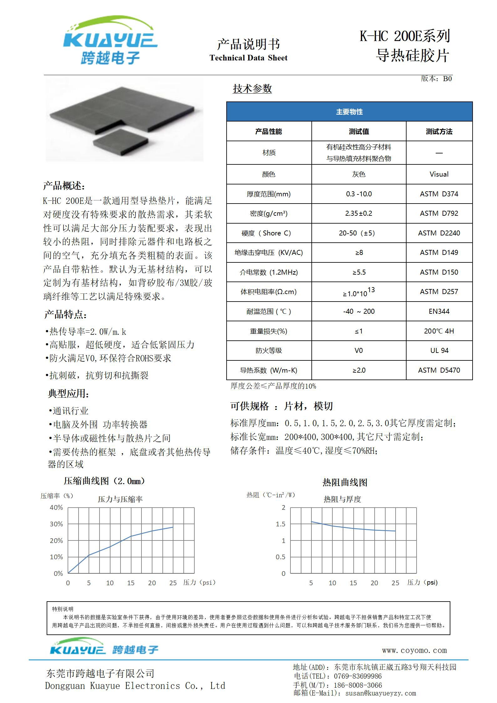 K-HC 200E系列导热硅胶片 TDS
