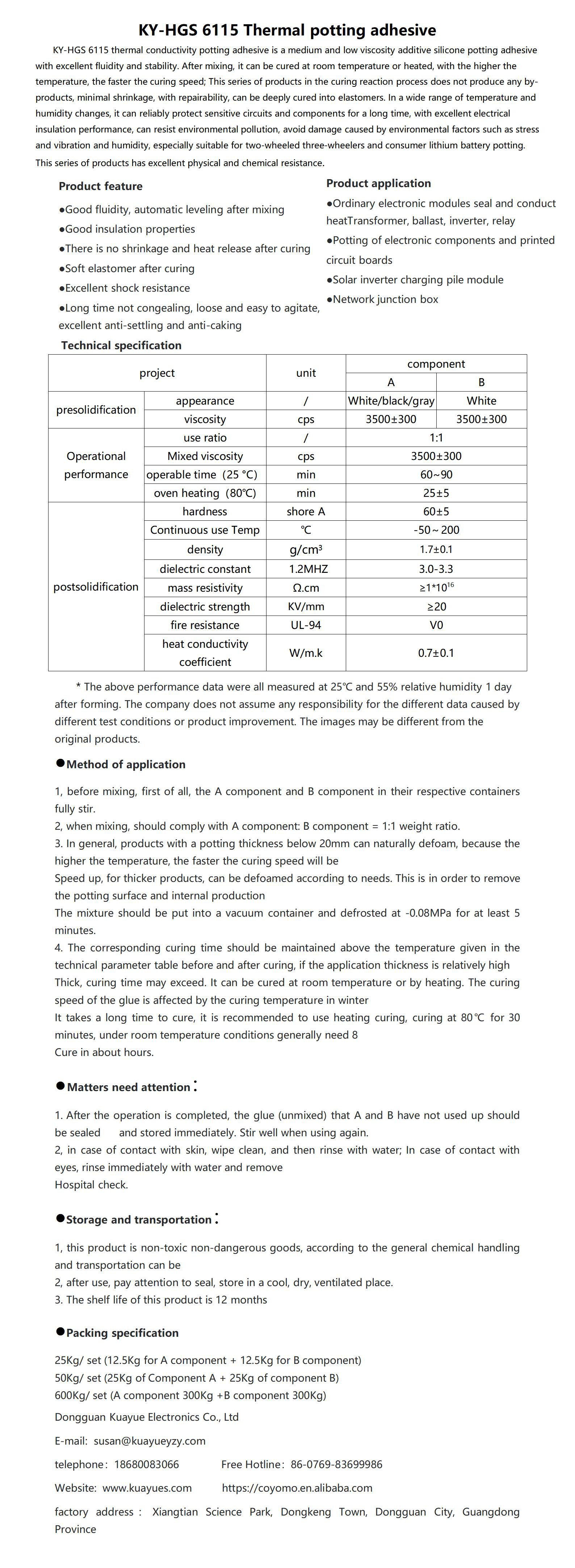 KY-HGS 6115 Thermal potting adhesive
