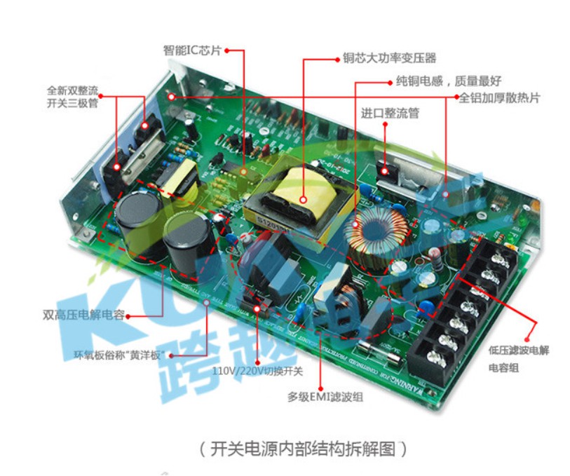 一个完整的开关电源热设计包括两个方面:一是如何控制发热源的发热量;二是如何将发热源产生的热量散发出去,使开关电源的温升控制在允许的范围之内,以保证开关电源的可靠性。下面跨越小编就从以上两个方面给大家详解。
